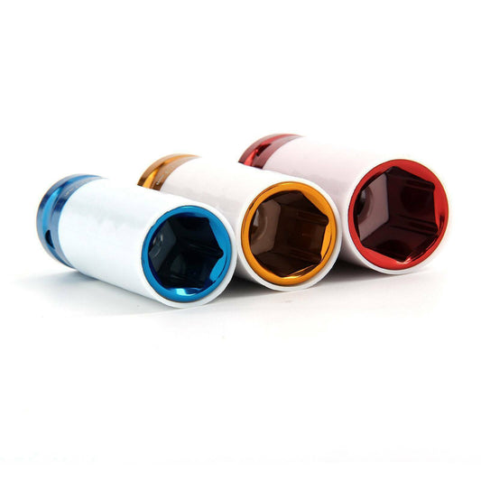 3pc Alloy Wheel Deep Impact Nut Socket Set 17, 19, 21mm 1/2" Nylon Sleeve
